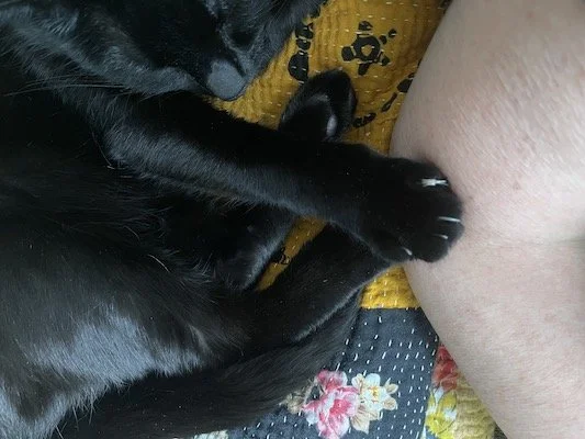 This newly written narrative does not unfold completely without a witness. Alongside my person is Clove. A feline I rescued six years ago, July 2020. She came from a 50 cat colony in a forest encampment miles away from where she is now. Feisty Felines scooped her up, one of the seven cats that asked to be rescued from that site.